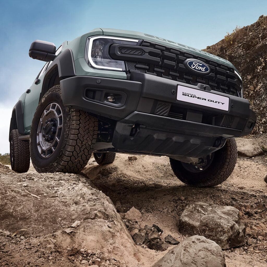 ด้วยระยะความสูงจากพื้นถึงใต้ท้องสูงสุด 299 มม. และความกว้างช่วงล้อ 1,710 มม. Ranger Super Duty ยืนสูงและกว้างขึ้น พร้อมลุยพื้นผิวขรุขระได้มั่นใจ และโดดเด่นทุกสายตาในทุกหน้างาน